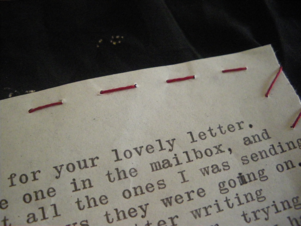 letter hand stitched onto fabric.