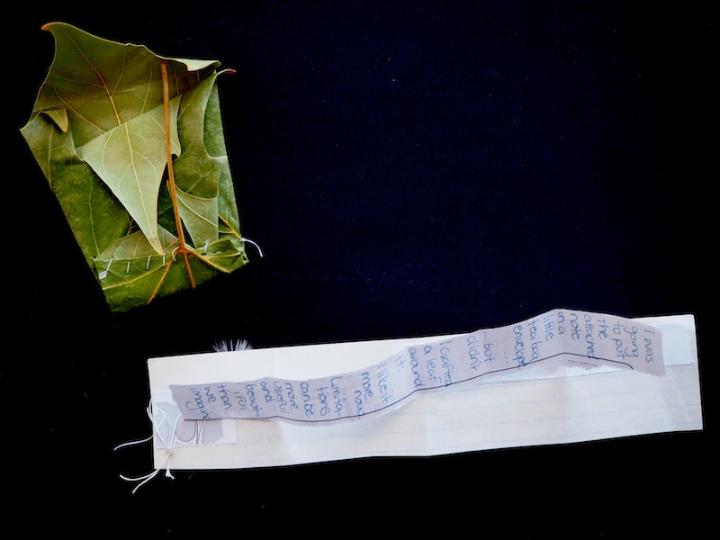 I was going to put the attached note in a little tea bag envelope … but didn’t. I crafted a leaf around it. I like it more now. Limitations can be more useful and beautiful than we imagine.