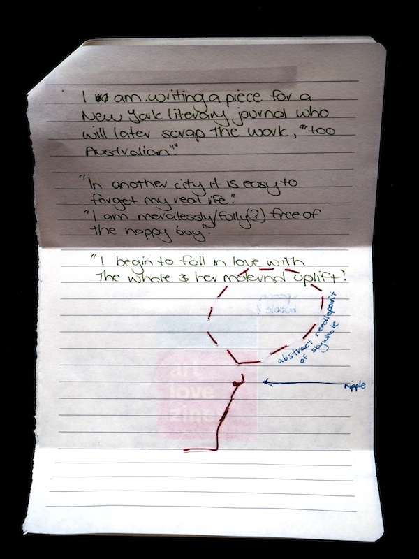 I am writing a piece for a New York literary journal who will later scrap the work, “too Australian”. In another city it is easy to forget my real life. I am mercilessly/fully(?) free of the nappy bag. I begin to fall in love with the whale & her maternal uplift. abstract needlepoint of skywhale <– nipple
