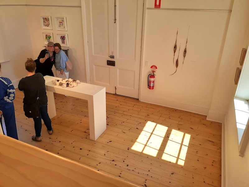 She isn’t, explains her connection, talks about art and a bit of training … I mention something about not necessarily needing training to be, or be considered, an artist (to be worthy/enough/artist enough). I ponder briefly on this large topic that I have deep and complex feelings about. I share some small words on the matter. I hope they leave her feeling at least a little encouraged, accepted, validated or seen. We have a lovely chat until another friend spots her and I leave them to it … off to collect my own catalogue .. to catch up with each piece, its title and artist statement from the start.