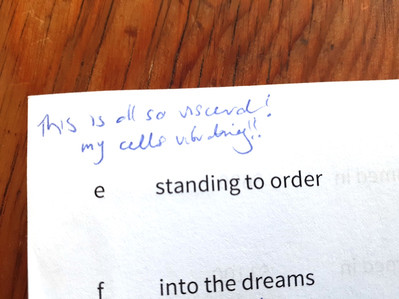 … visceral reactions begin in my body .. my same-time-different-place memories of these moments surface, and I start making small notes, words and symbols to record what bubbles up: